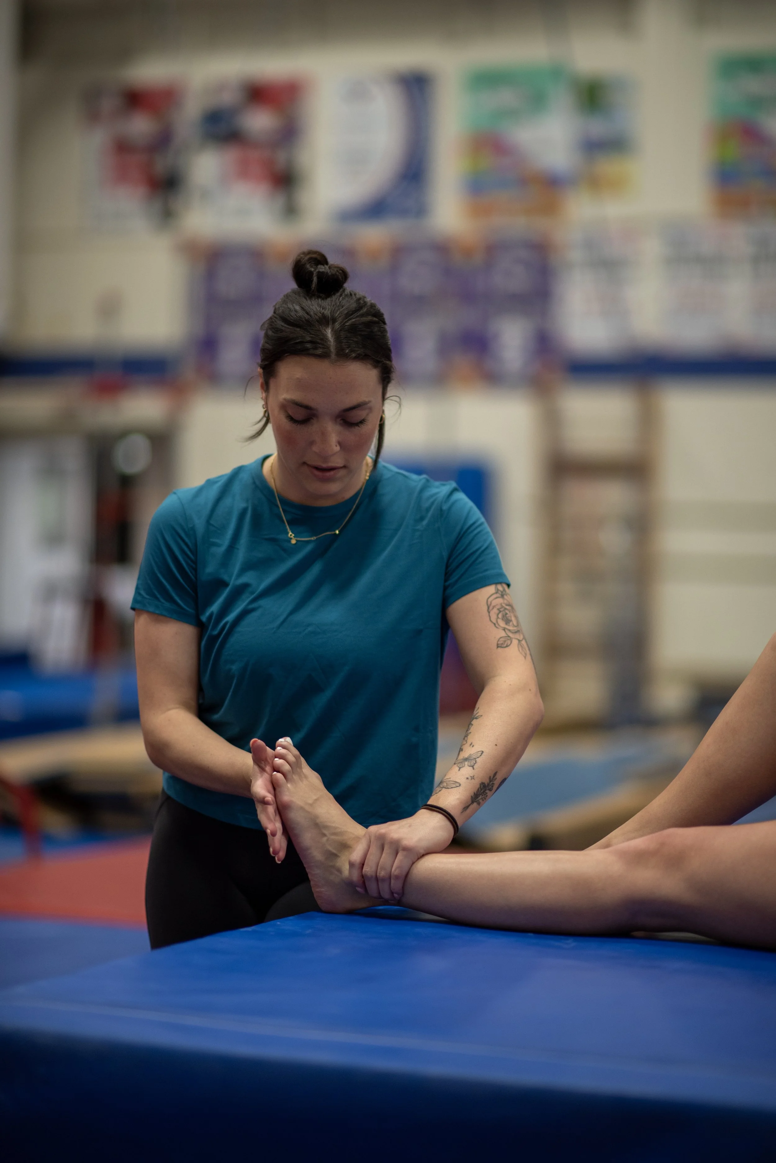 Injury prevention sessions are designed to identify movement inefficiencies, muscular imbalances, and mobility restrictions that commonly lead to overuse or acute injuries in gymnastics.